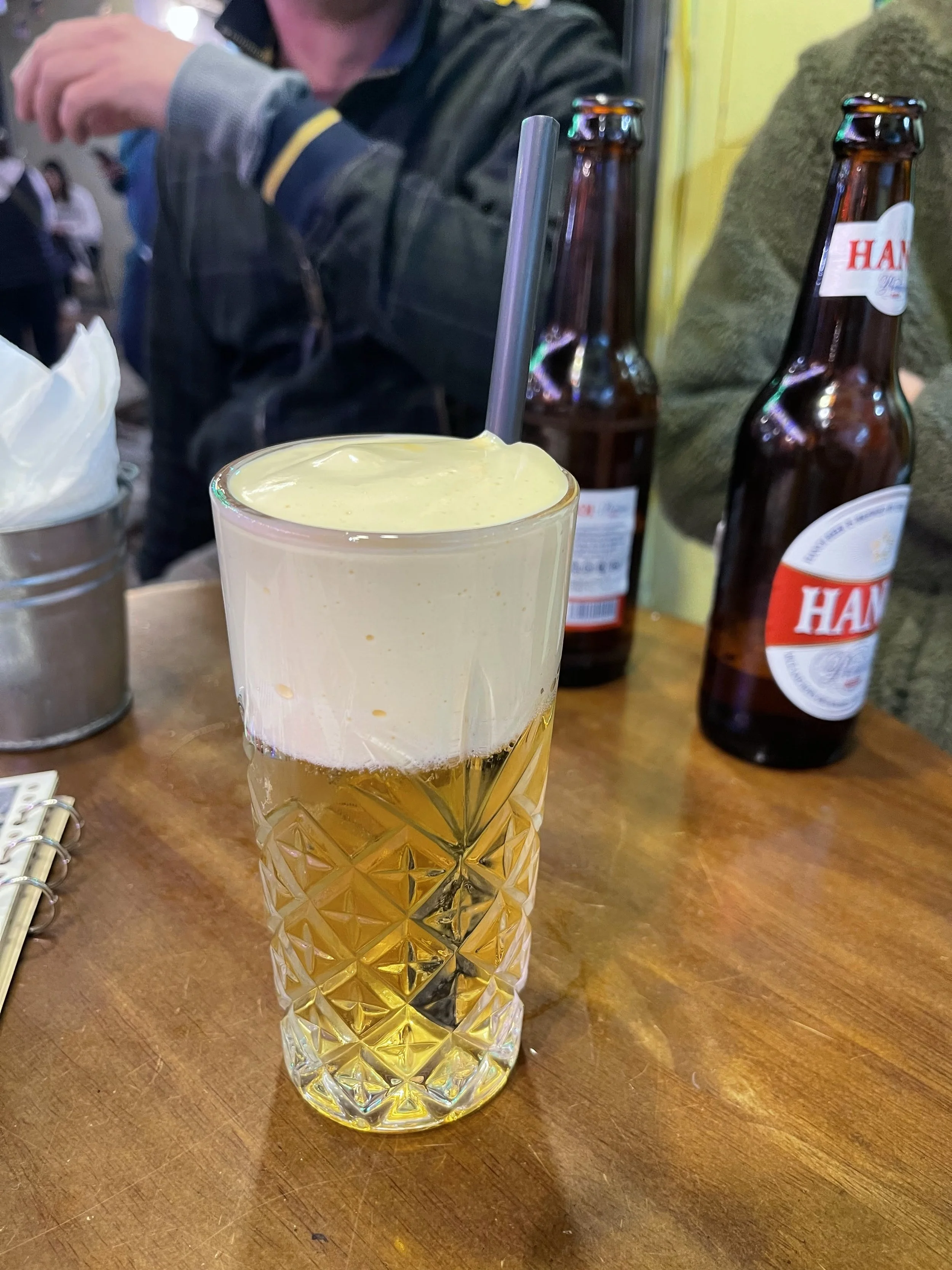 We made up for it by talking quite a bit on Train Street. They invited us to sit with them, so we obliged and I ordered an egg beer, the flavors of which surprised me in how well they went together — the cream a nice textural contrast but not too sweet.
