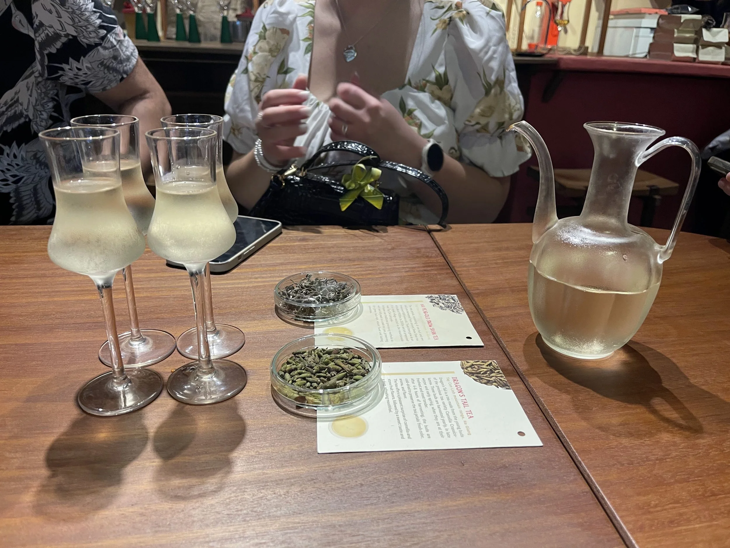 There they welcomed us with cold classes of white tea, which Tinh characterized as “the Ferrari of tea,” as compared to the “Toyota of tea,” green tea.