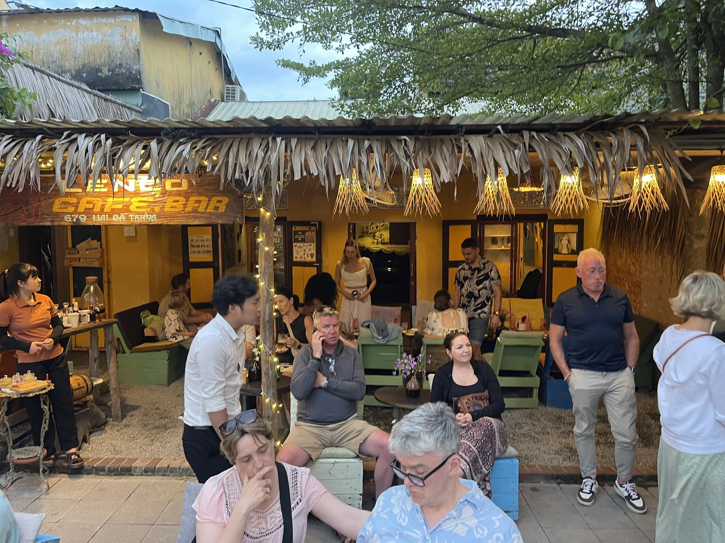 Measurements done, we set out for my main event, which began at Lenco Cafe & Bar. There we joined a group of nine for a cocktail tour of the old town: two Brits about our age, a couple from Denver in their late-30s, two Atlantan girlfriends on sabbatical, older newlyweds from Scottsdale, and our guide – Tinh – purportedly both Vietnamese and Canadian.