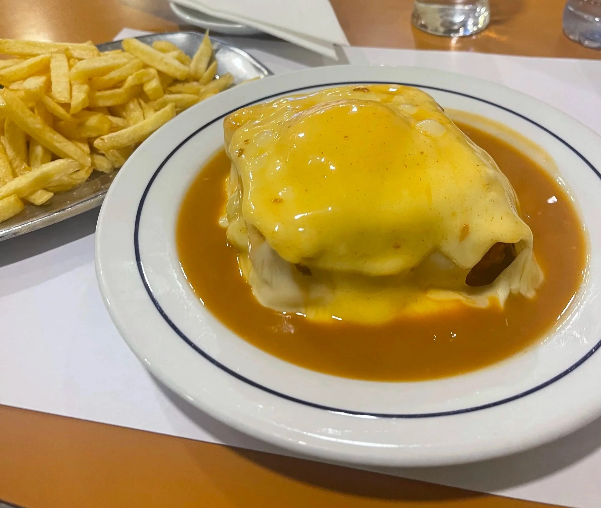 The day before Thanksgiving, we took a fast but winding train ride up to Porto, during which we could barely walk down the aisle on account of the centrifugal force caused by the curves. My first order of business upon our arrival to the Cidade das Pontes: devour a Francesinha, which I accomplished in a restaurant full of dudes glued to the UCL match between Monaco & Benfica.
